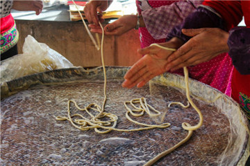 来到天生桥景区,大家可以分别到饼子坊、馓子坊、豆腐坊、糖坊、木榨坊、酒坊等作坊学艺并制作食品。亲身体验做传统小吃,非常有趣。整个作坊区美味飘香,空气中夹扎着包谷酒的酒香,馓子和喜饼的油箱,闻着独自都饿了。在这里中午可以自己动手包饺子,并且可以欣赏巴人“堂戏”和山歌表演,相当的精彩。