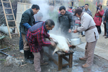 如果你来神农架,那么在神农架的二十四节气园里就可以亲眼观看杀年猪的全过程,不过,得给个提醒,这个还是蛮血腥的哦,晕血、胆小的人就不要去看了。其实杀年猪的时候非常的热闹,还要放鞭、祭祀,在神农架,可以看到一套完整的杀年猪的仪式,也算是大开眼界了。