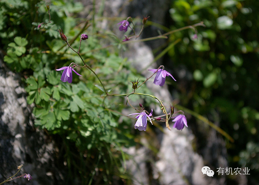 无距耧斗菜:毛茛科,生长在板壁岩的巨大岩石上。
