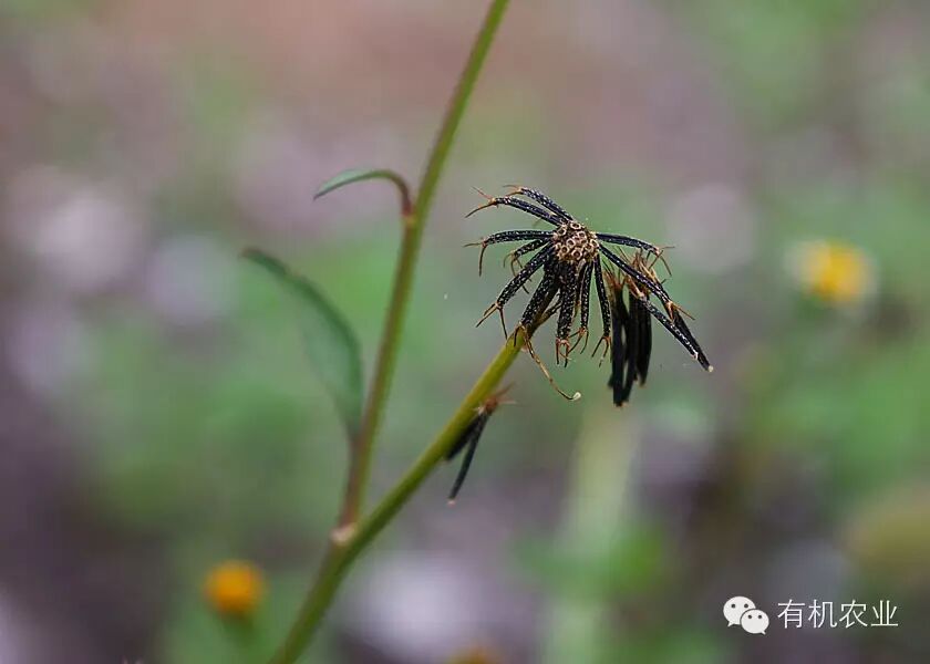 鬼针草:菊科,瘦果具钩刺,本地人又叫婆婆针,喜欢粘在衣服上。