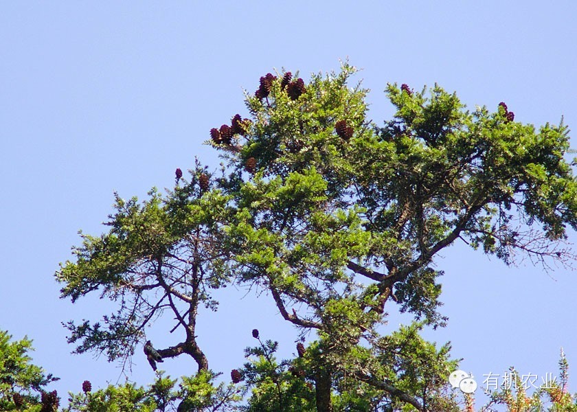 铁坚杉,松科油杉属植物。说是千年古杉,其实并不属于杉科。这是大树的最顶尖部分的特写,可以看清球果,