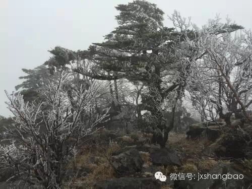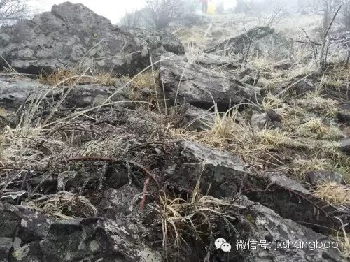 接近山顶这种石头更是叠嶂而起,其颜色、其神姿、其环境烘托,彰显出几分老君神仙的意境,也许老君山之名由此而来也说不定哦。草甸间的高山老竹也是一大特点,其已经变成枯干的细长竹竿,一根根竖立簇拥指向天空,当地向导说,这些枯死的竹竿一直存在,60年之久才能长出一次竹米,形状跟稻米一样,只是颜色稍黑,在他妈妈这代人没有饭吃的生活困难时候就依赖上山采摘这些竹米吃,一旦采摘后竹子也就结束生命了,接着延续的就是竹子根部重新长出的新竹,生长速度相当缓慢。这些竹子和满地的枯黄草甸挂满了冰凌,犹如都穿起了一套玻璃外衣,煞是好看,脚踩在上面“咔哧咔哧”,压碎这些一根根的冰凌,产生一种以往从未有过的乐趣。