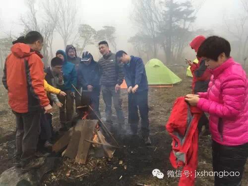 营地有建设的几栋木屋。向导说,这是专门为满足登山爱好者的扎营需求而兴建的,里面有通铺的炕头,满足不愿意或不方便扎营的登山者宿营需要,只要需要,向导就可以通知人来开锁,200元一间,一间可以供8个人宿营。大家抵达这里已经下午16时许,可是等待人上来开锁要3个多小时,于是大家都各自搭帐篷,随后大家起火造饭,部分人吃干粮。吃饱喝足后,大家玩起了篝火,围着篝火大家有说有笑,早将一天的疲劳和艰辛忘得一干二净,对于户外穿越者来说,也许享受的就是此时此刻的胜利满足感!