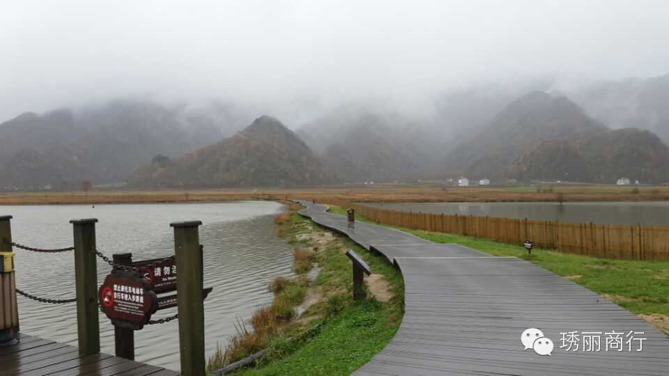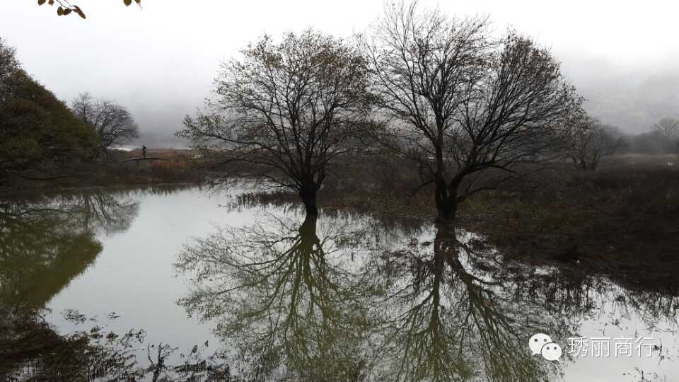 沿着布满落叶的栈道前行,山水尽染,花叶红黄,水草荡漾。湖面的倒影将一切重现,静谧中如梦如幻。山,水,林,雾完全相拥,宛如一幅和谐美妙的画卷。移步换景,人在画中。如此美景,只能依靠镜头记录一切