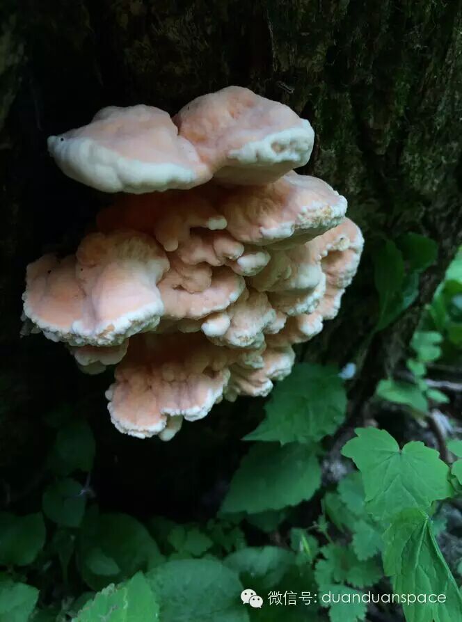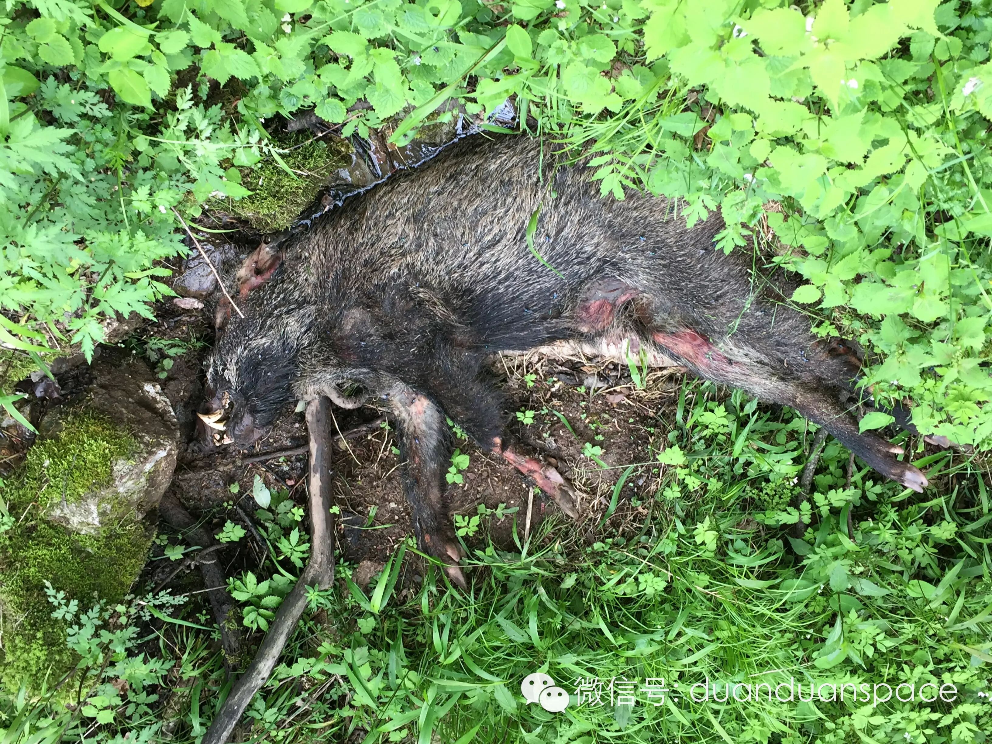 在路边发现的蘑菇君和野猪君。据向导讲此野猪君体重约100-200斤。是一个小野猪。