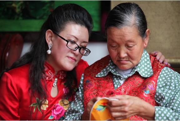 (堂坊叠绣传承人杨钿和她的大姐)