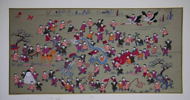 3、“堂纺叠绣”作品:《龙凤呈祥》、《五谷丰登》、 《花好月圆》、《喜鹊登梅》、《麒麟送子》、《松鹤延年》、《嫦娥奔月》、《梅鹿嬉戏》、《福禄寿喜》、《鸳鸯戏水》、《老鼠嫁女》、《彩蝶恋花》、《多籽石榴》、《荷塘鱼影》等。