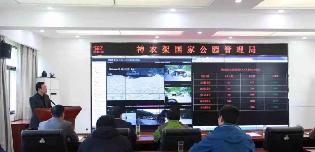 4月27日,神农架国家公园管理局、湖北神农旅游投资集团联合召开游憩展示区游客限量管理工作现场推进会,本次游客限量管理前期共投入约60万元,在神农架国家公园范围内游憩展示区内神农顶、大九湖、天生桥、官门山、天燕、神农坛六大景区各入口处安装共计11块显示屏,连接景区票务系统,实行每分钟更新1次,每日统计1次,方便神农架国家公园及神旅集团及时掌握数据。