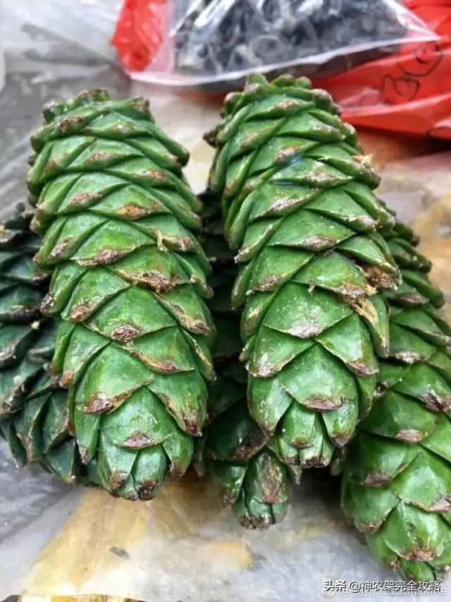 神农架野生松子神农架原始森林的臻品,野生的松子,紧紧地嵌在松塔中,细细地剥下松子,真是香的不得了。