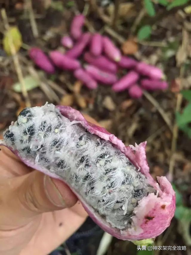 八月瓜,中药名称“预知子”,神农架人亲切称其“八月炸”。这个果子真的不一般,因为它是真的名副其实,成熟就“炸”开。那鲜嫩香甜的果肉就这样暴露在咱吃货们面前,怎能轻易“嘴下留果儿”呢!