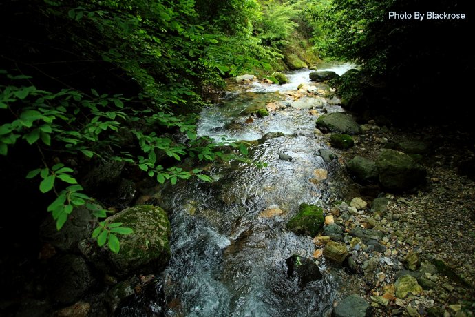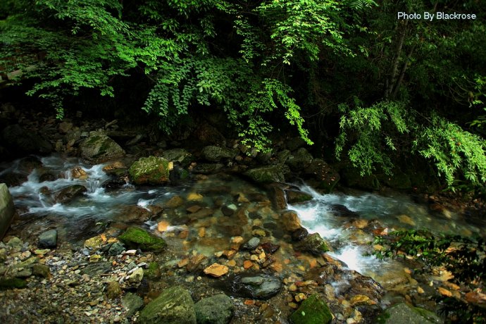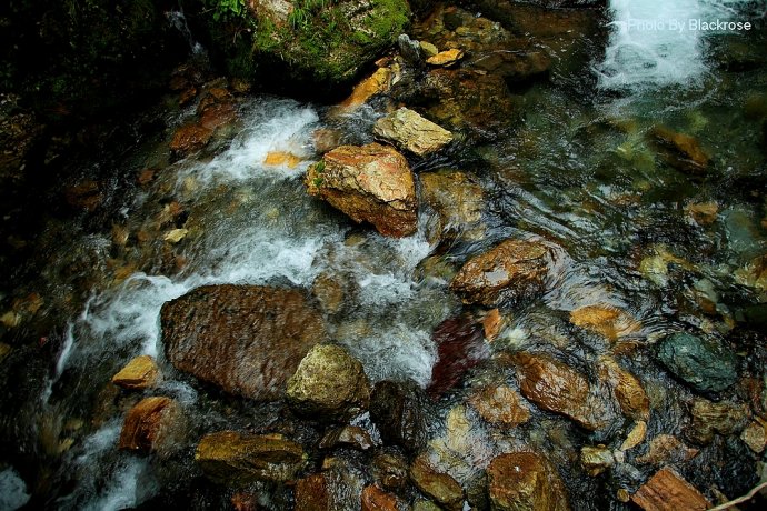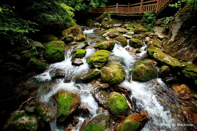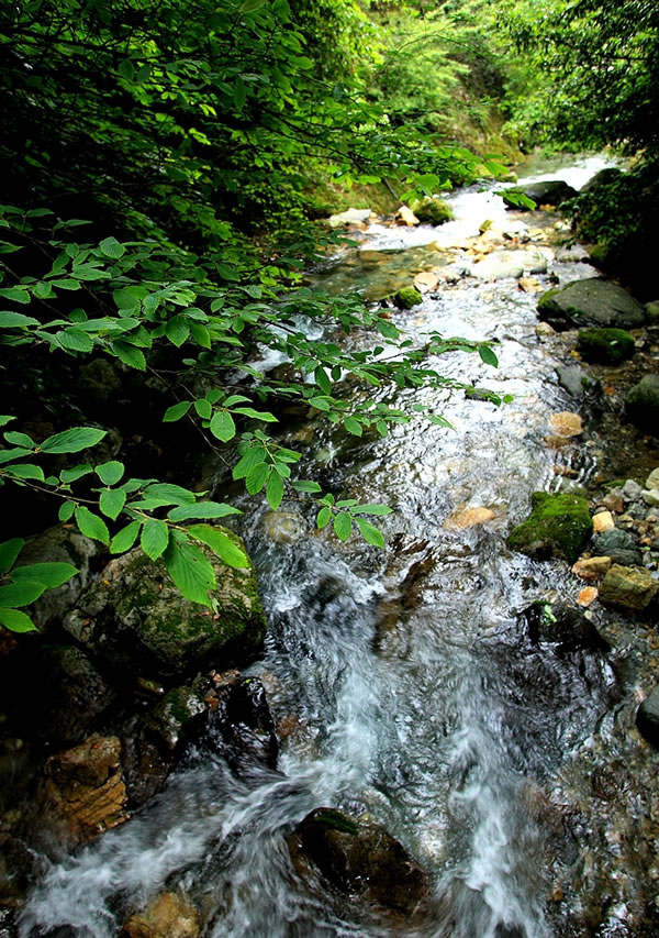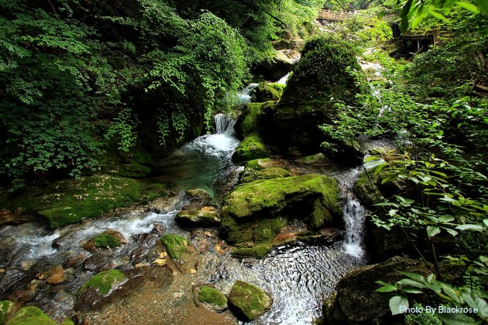 天潭地潭,清澈见底,潭中奇石千姿百态,结伴成群的鱼儿自由穿梭,令人心旷神怡;飞瀑自峭壁倾盆而下,似银河泻地,玉珠飞溅,展出万种风情;