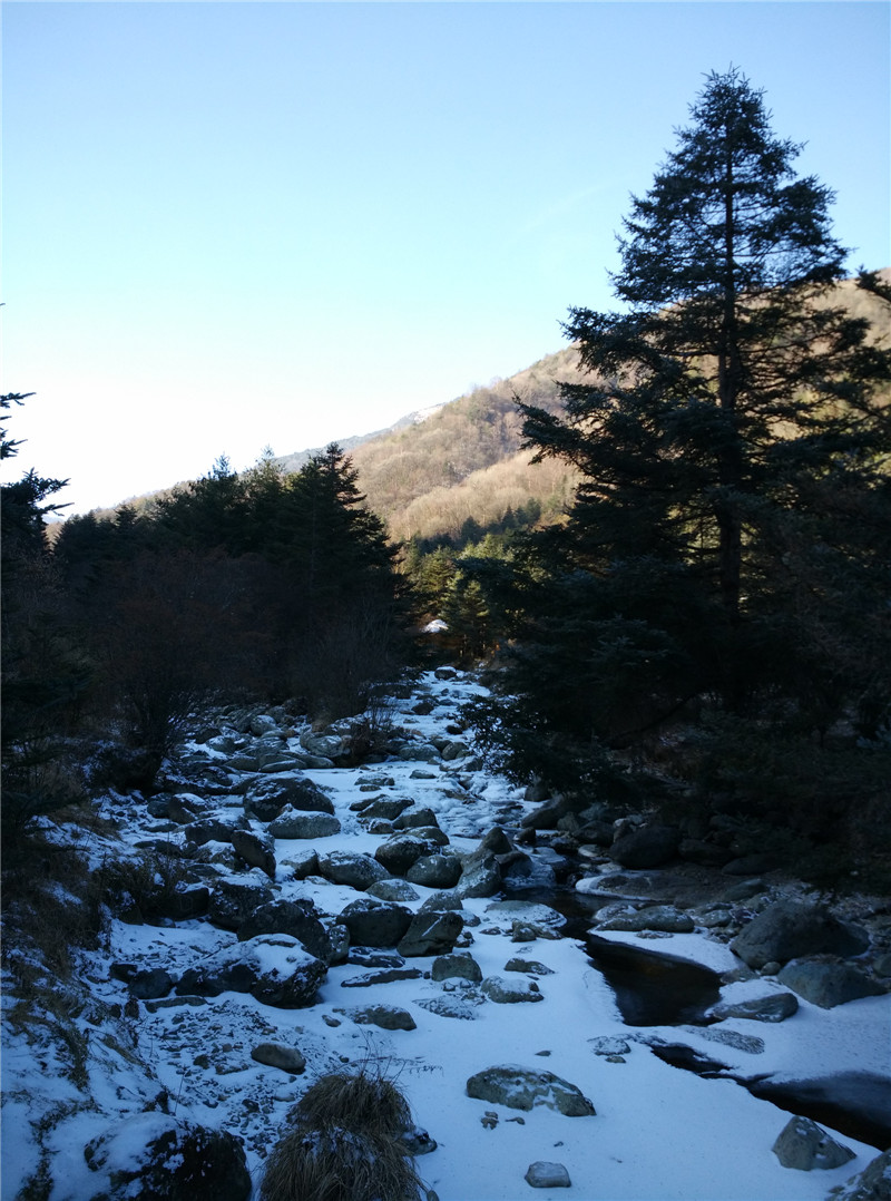 小龙潭的溪流已经付上了一层厚厚的雪,这里是金丝猴救助站,哪些受伤的金丝猴被人发现后就会送到这里来,优渥的生活环境有时候会让他们不想离开