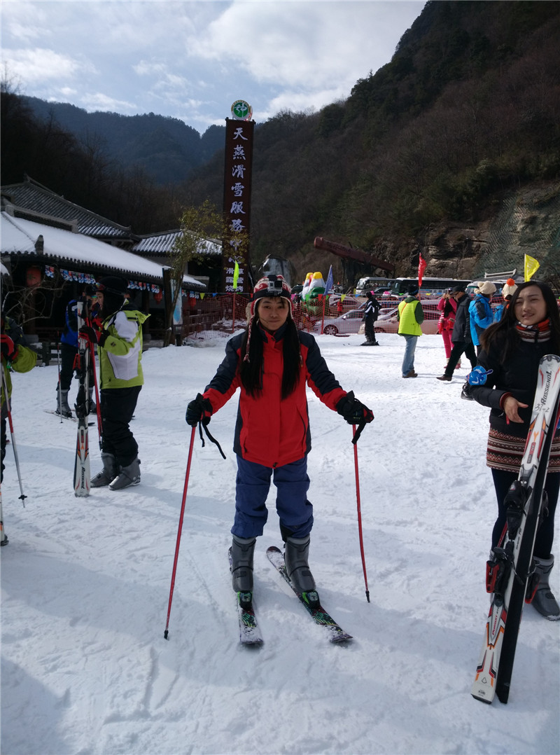 第二天早上终于到了天燕滑雪场看到皑皑白雪让我也感觉一整片纯净,太阳越过山峰,露出脸庞,散落温暖,在滑雪场上晒太阳。感觉棒棒哒。