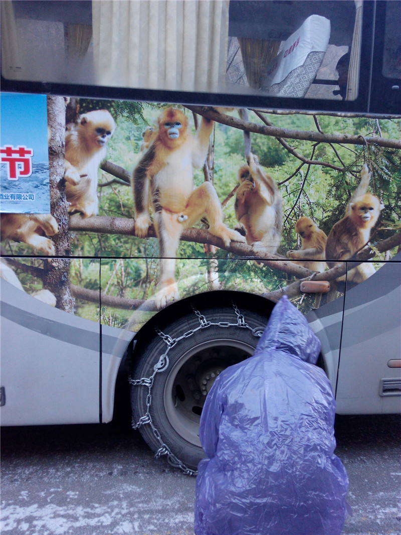 第三天早上,我们去神农架5A风景区,神农顶。进入雪地后师傅就赶快装上了防滑链。这里是神农谷,但因为它是一个风口,狂风呼啸,风大的真的感觉自己都会被风吹走。雪厚厚的铺在地上,一踩下去非常松软。